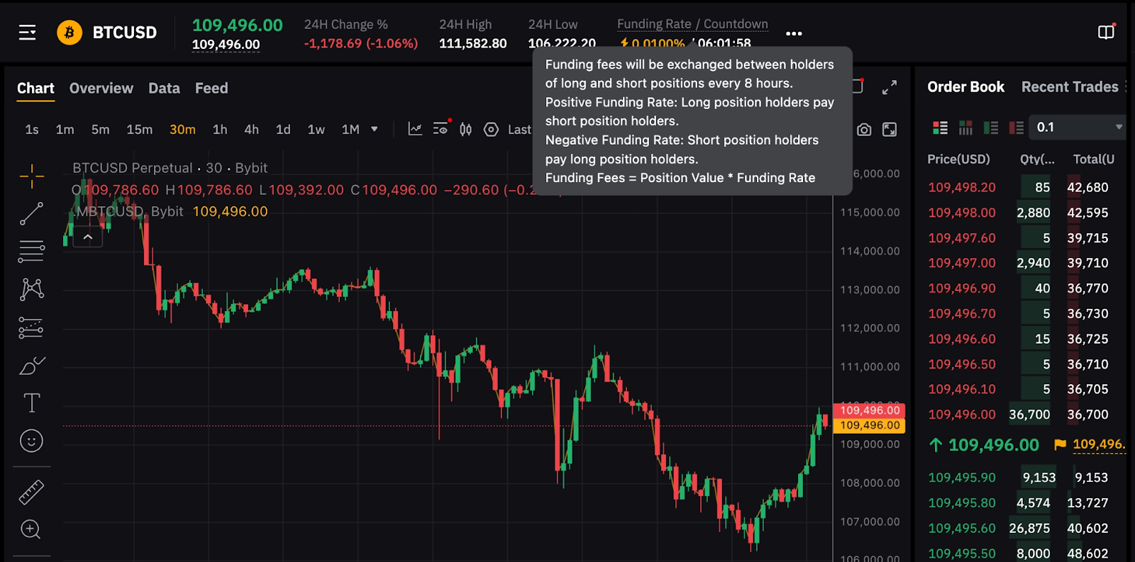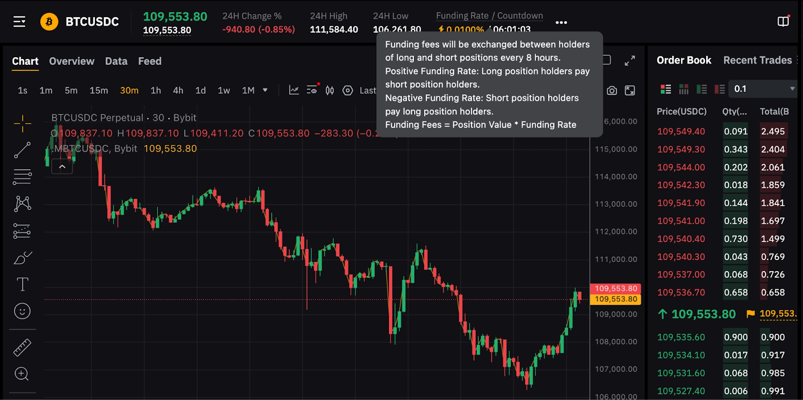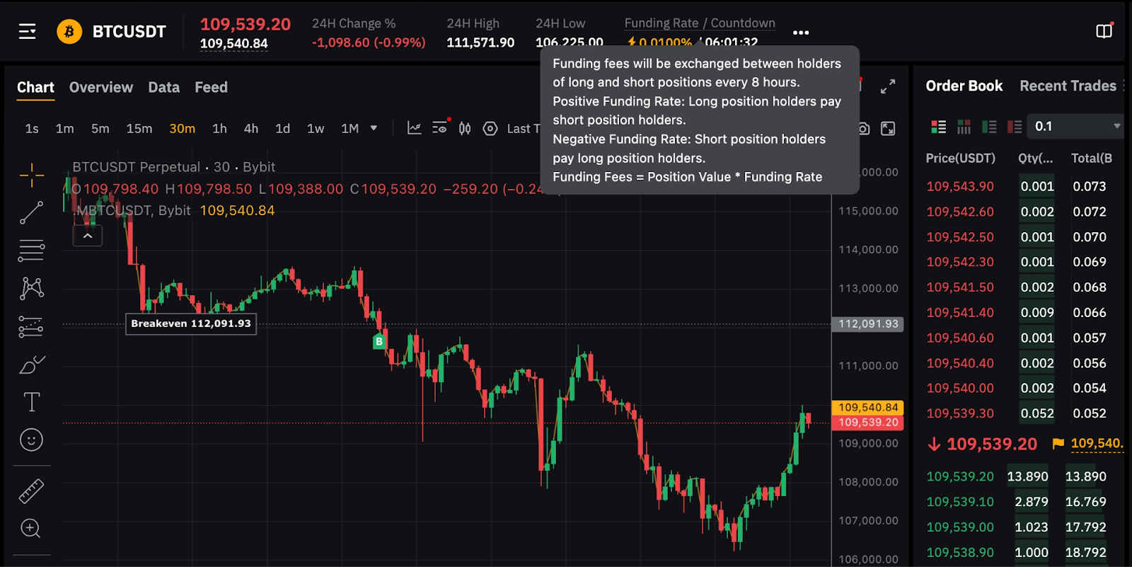 Funding is the primary mechanism to ensure Bybit’s last traded price is always anchored to the global spot price. It is similar to the interest cost of holding a position in spot margin trading.