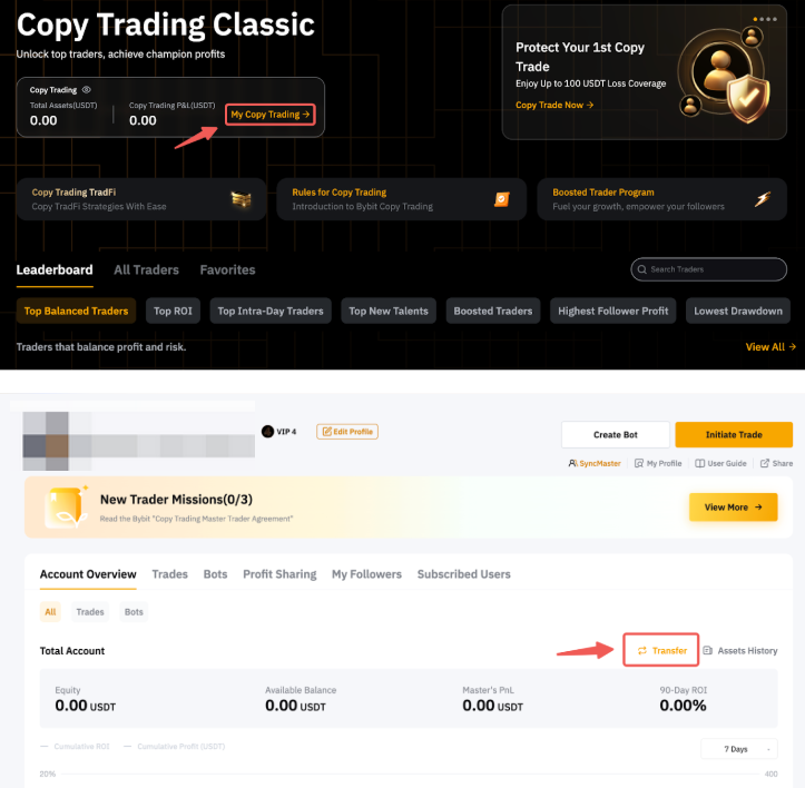 Step 2: If you’re entering the Copy Trading page for the first time to initiate a trade, please click on My Copy Trading (Master Trader) → Transfer to make a deposit.