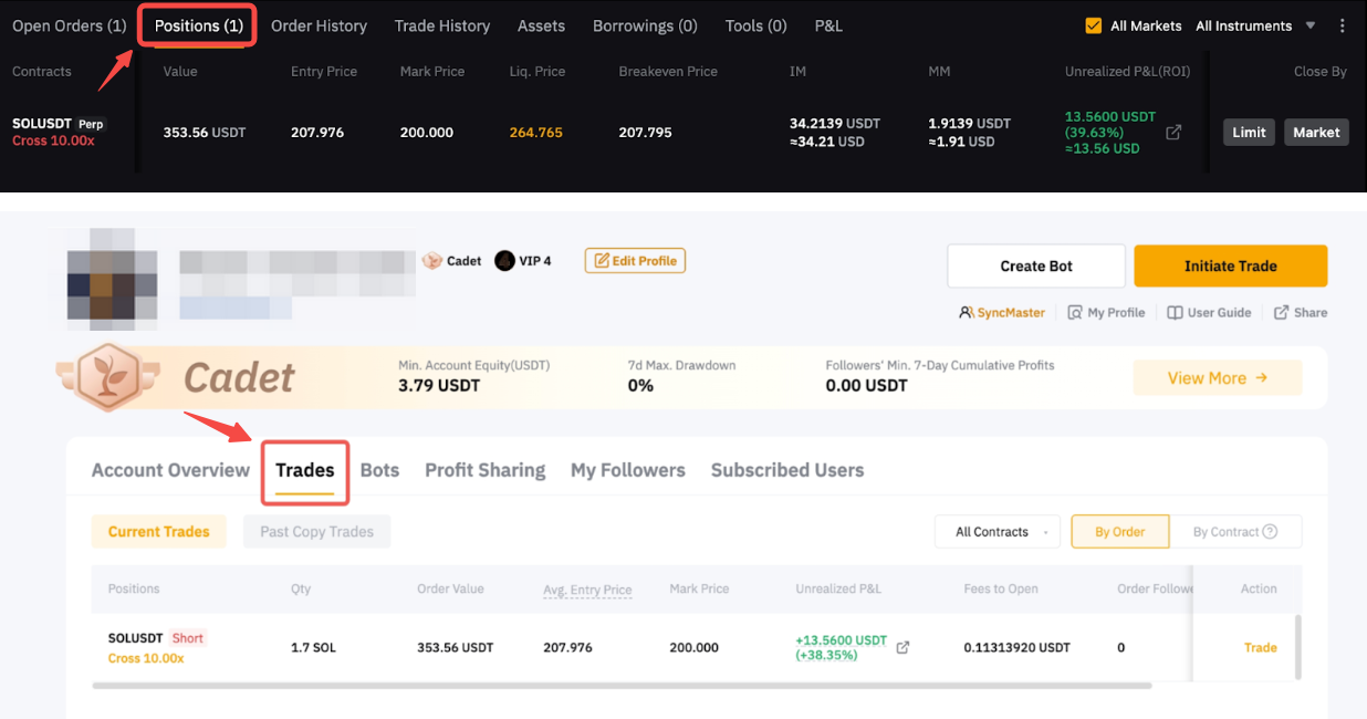 The unrealized P&L on both tabs is calculated based on the average entry price. To view each order history, go to your Unified Trading Order page. For more information, please refer to FAQ — Copy Trading.
