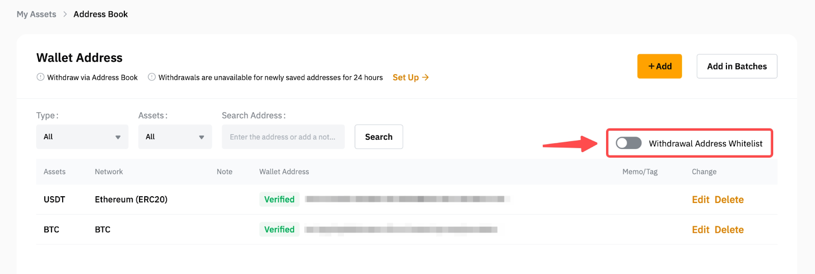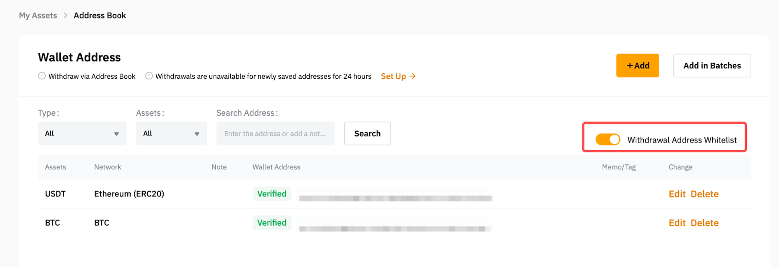 1. Withdrawal Address Whitelist