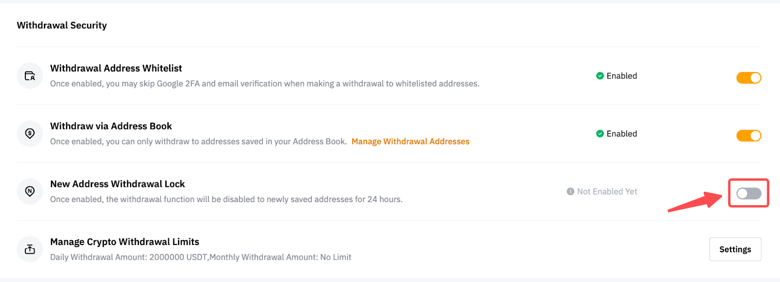 3. New Address Withdrawal Lock