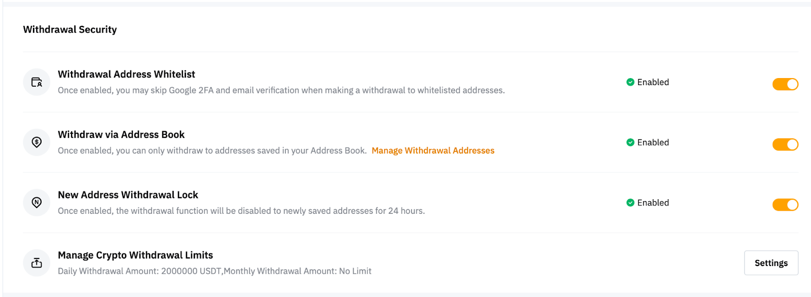 - Withdrawal Address Whitelist