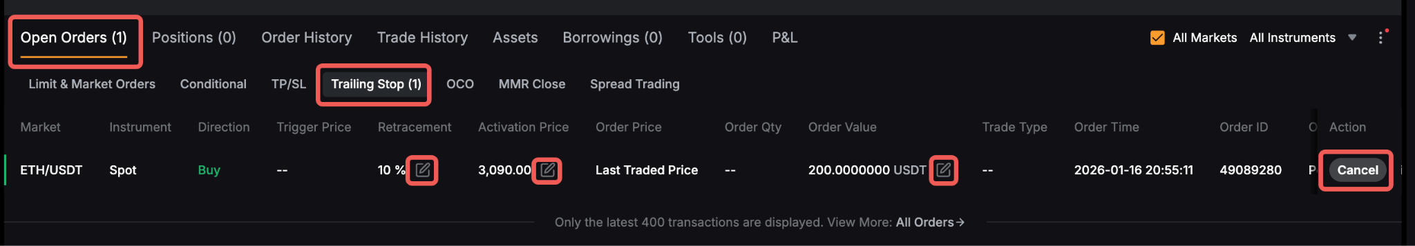 Here’s a step-by-step guide on how to place a trailing stop order on Spot & Margin Trading.