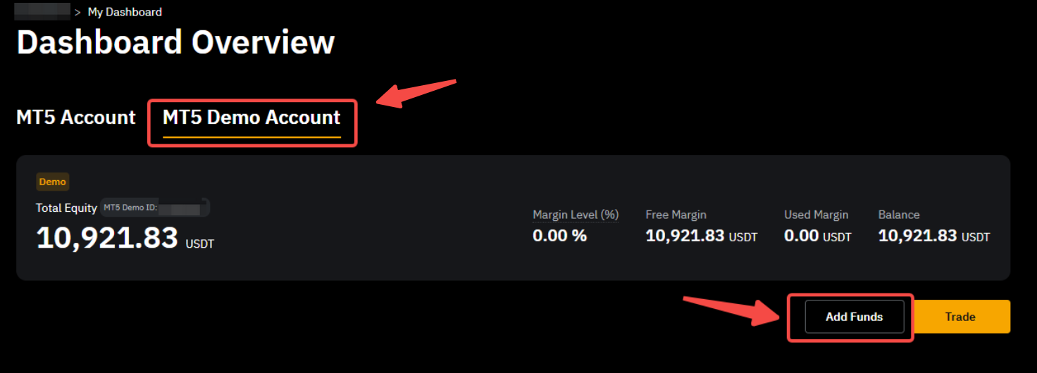 ¿Cómo puedo añadir y eliminar fondos de la cuenta de prueba TradFi (MT5)?