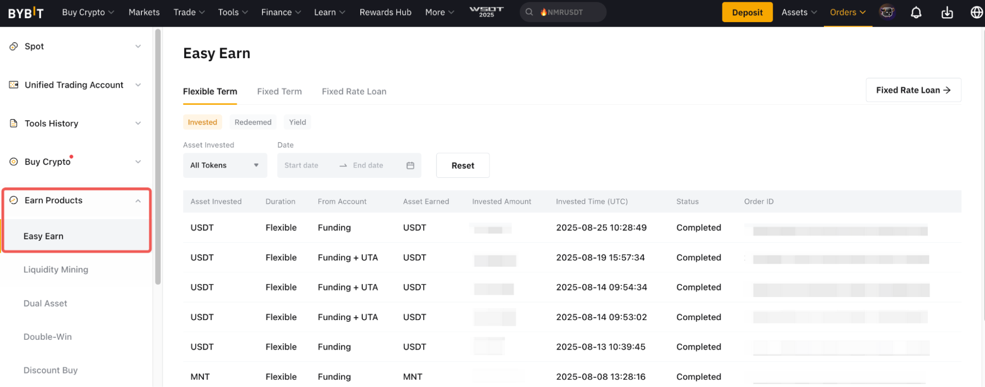 Además, puede encontrar sus registros de pedidos en Earn Order → Easy Earn.