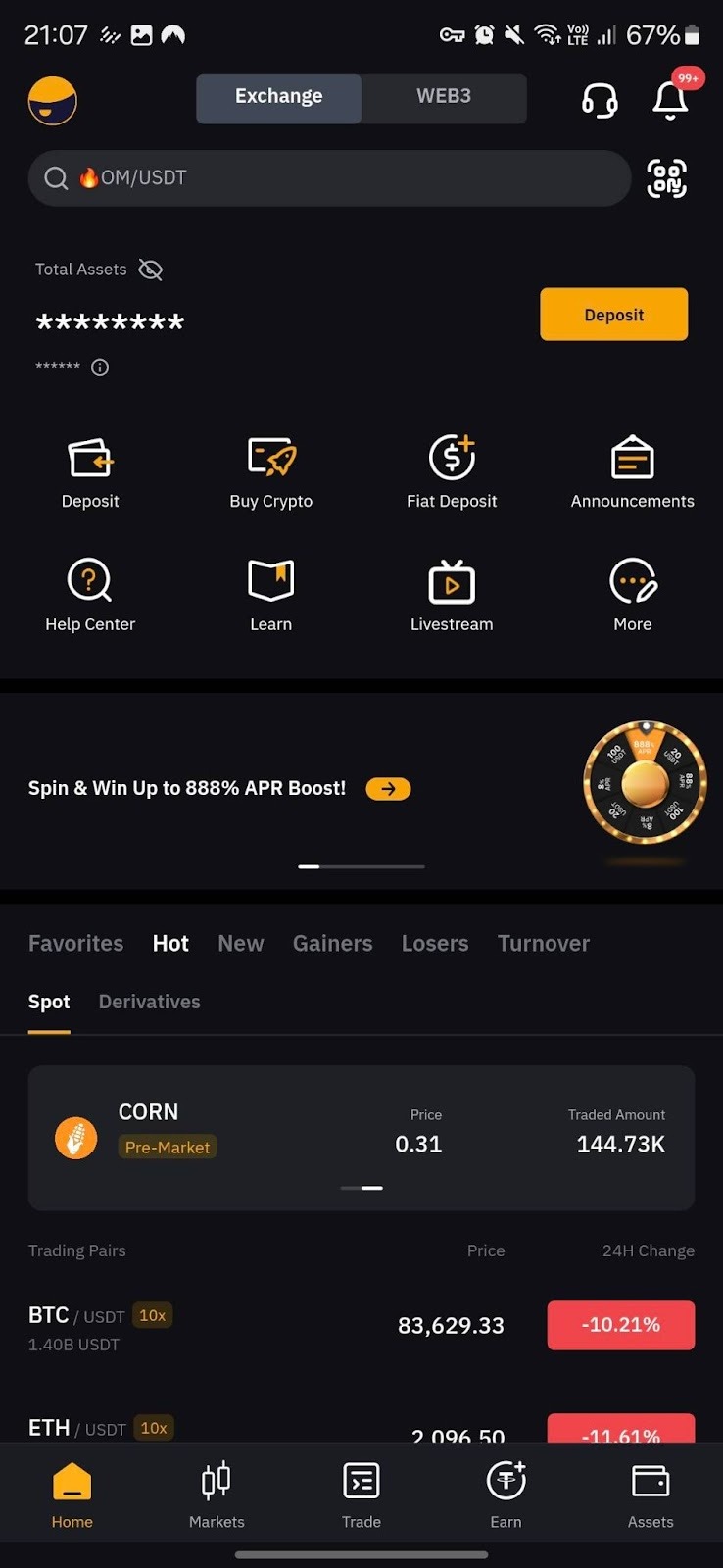 - 入金:現在、お客様のアカウントに暗号資産がない場合、資金を直接入金できます。