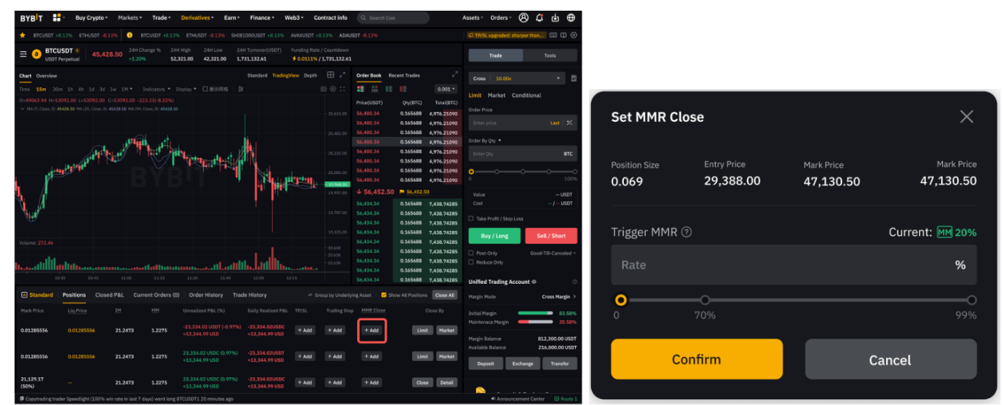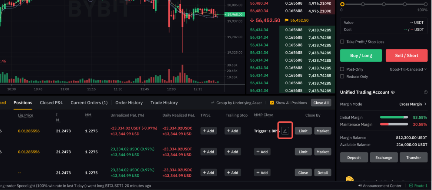 Bybitでは、総合的なリスク管理ソリューションの必要性を考慮して、UTAにおける維持証拠金率(MMR)決済注文を導入しています。これはトレーダーを支援するツールで、アカウントのリスクプロファイルを事前に管理し、仮想通貨取引に内在するボラティリティへの耐性を強化できます。