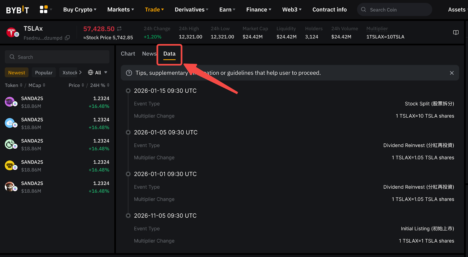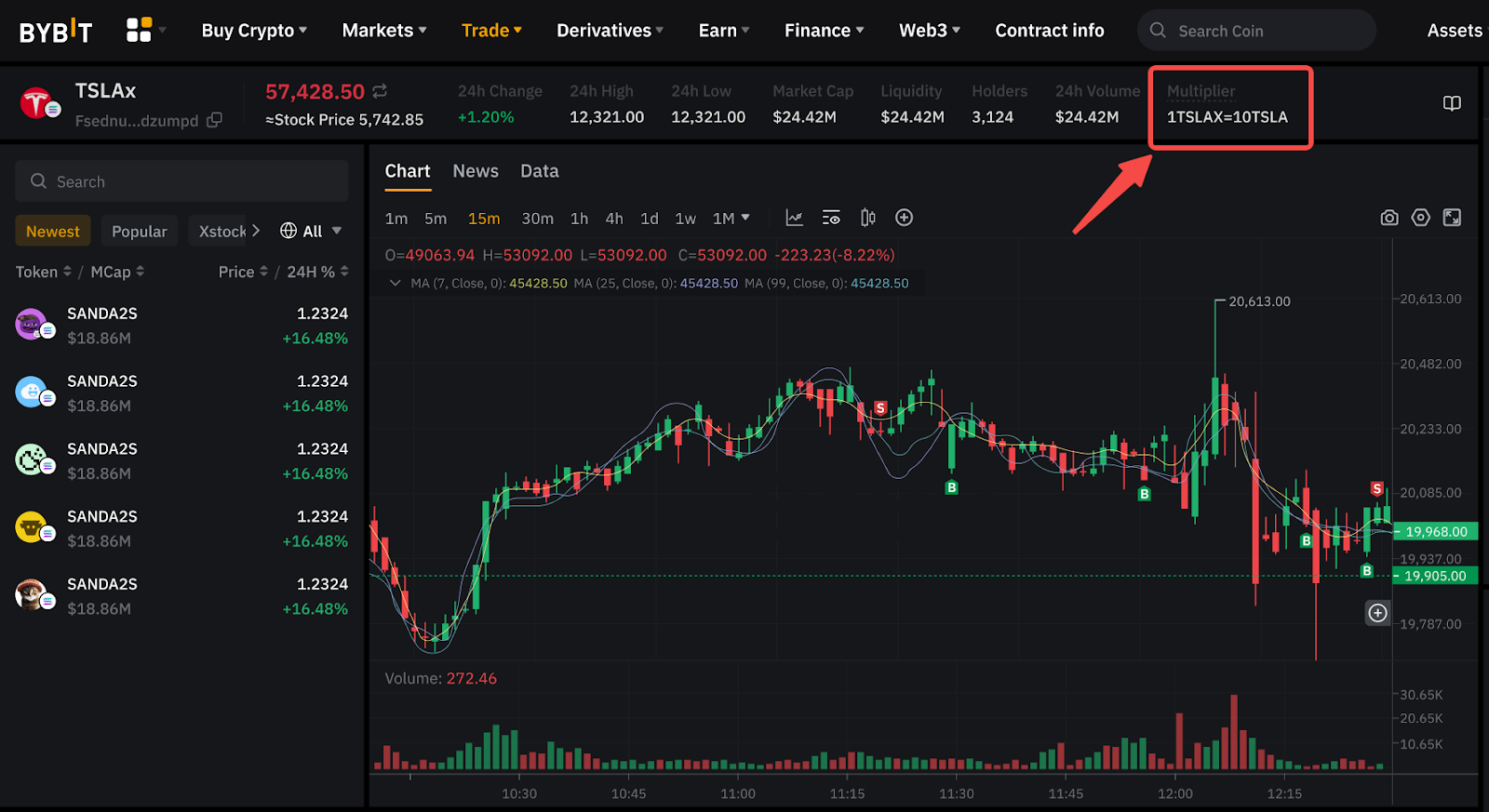 If you are using Bybit App, go to the xStocks trading page and locate the Current Multiplier section near the price information (above the chart).