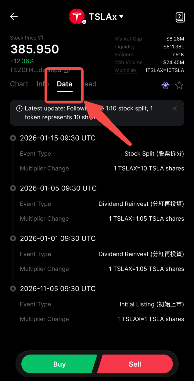 To reflect these changes, we use a Multiplier mechanism. When such corporate actions occur, the Multiplier will be adjusted accordingly. This ensures the token’s economic value remains aligned with the underlying stock.