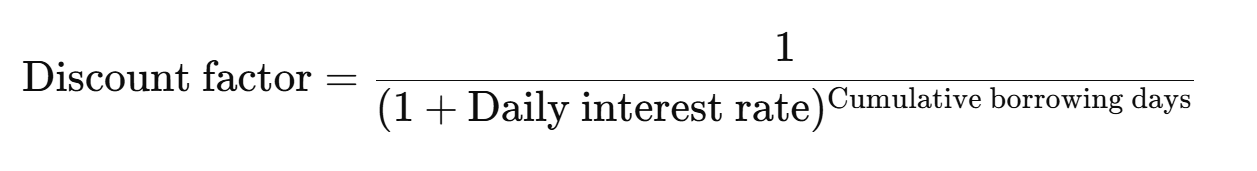 Total borrowing days up to a given installment, used to calculate the discount factor.