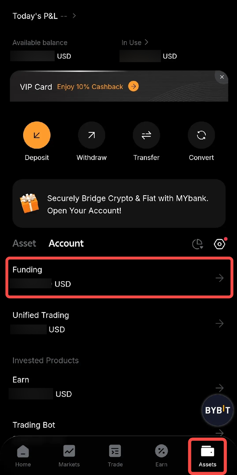 Step 6: Once the coins you've purchased have been successfully released by the seller, you can check your assets in the Funding Account. If you have activated the Savings Subscription upon P2P purchase, the coins will be directly credited to your Earn Account.
