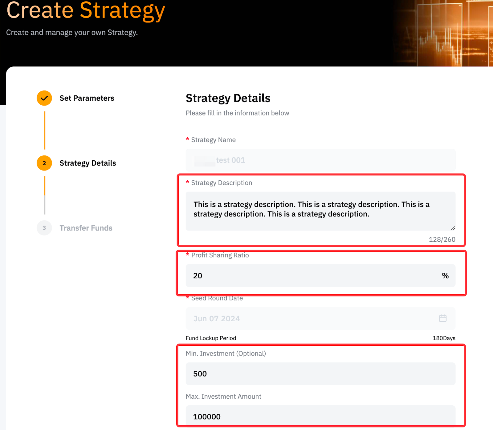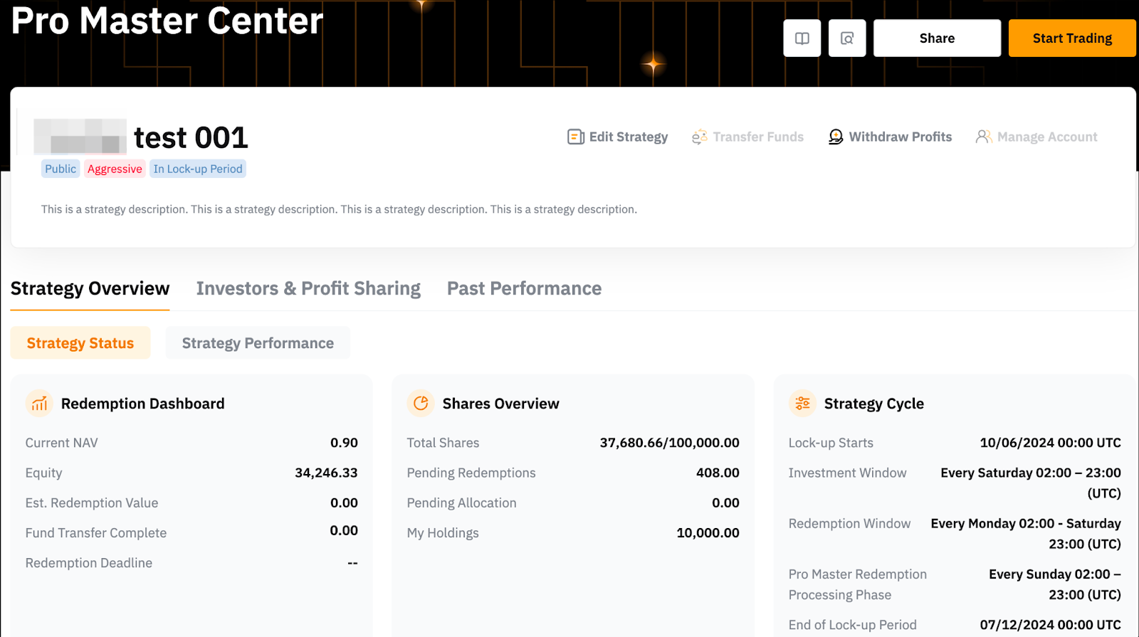 The Max. and Min. Investment Amounts are updated automatically, while changes to the Strategy Description require manual review which takes around 1-5 working days. However, the Strategy Name cannot be modified.