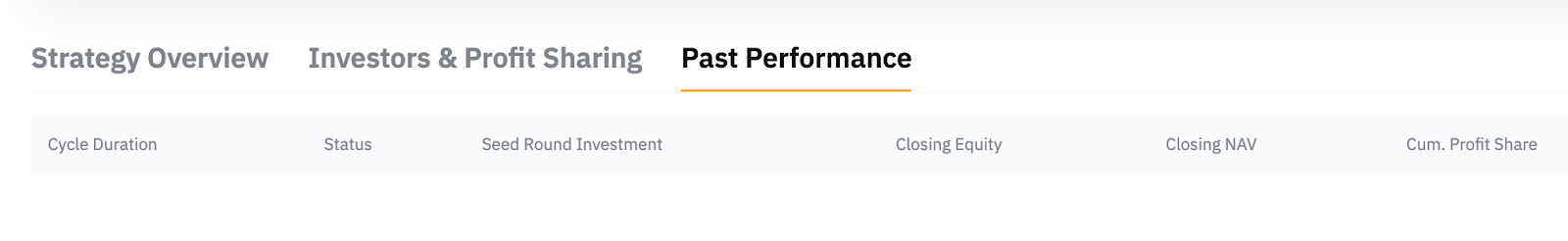 You can see the details of your active strategies under the Strategy Overview tab. On this page, you can track the current state of your strategy under Strategy Status, or zoom into an individual strategy’s performance under Strategy Performance.