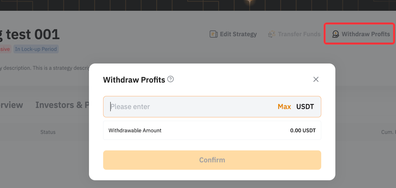 Step 2: Enter the withdrawal amount and click Confirm.