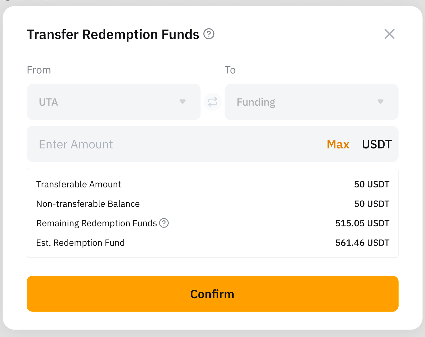 Step 2: On the pop-up, enter the amount you wish to transfer. Click Confirm.