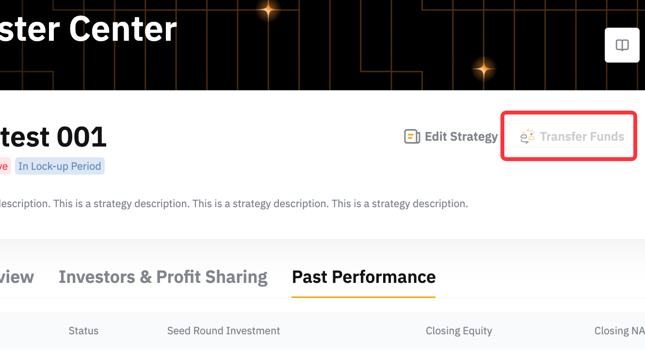 1. Transferable Amount: This value reflects the amount of USDT available for transfer within the Pro Master's Unified Trading Account (UTA). If this amount falls short of the total required for investor redemptions, the Pro Master is responsible for managing their orders and positions to free up sufficient funds.