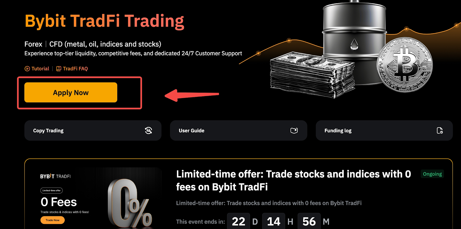 Bybit is excited to introduce our new TradFi product, now available directly through our website. With TradFi, you can access a wide range of CFD products including FX, Metals, Indices, Oil, Commodities, and U.S. Stock CFD.