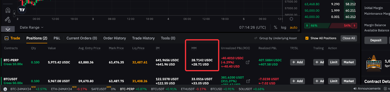 Maintenance Margin Display on Position Tab