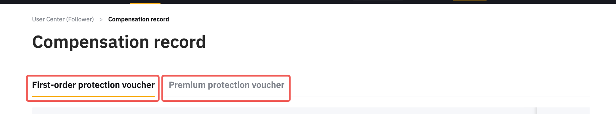 • Se o seu Master Trader já abriu e fechou a primeira ordem (se resultou em lucro ou perda), o Voucher de Proteção de Primeira Ordem não estará mais visível na Página de Copy Trading