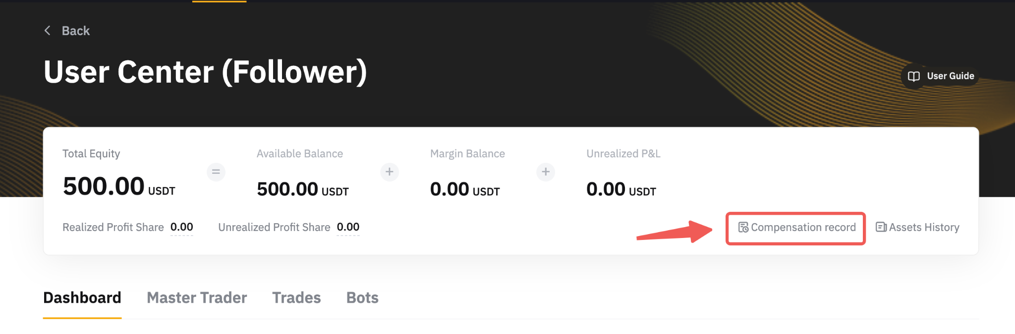 Copy Trading Clássico: Registro de compensação clássico