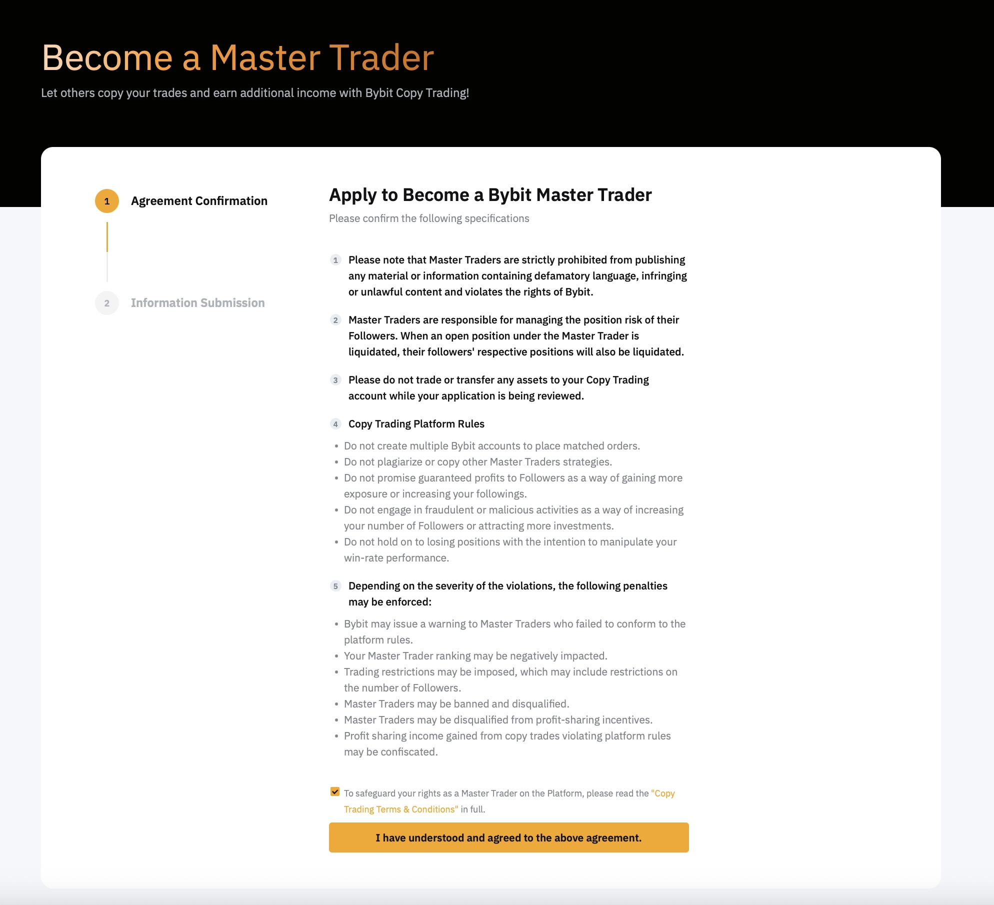 • Aprenda as regras: Leia o Contrato de Master Trader de Copy Trading da Bybit