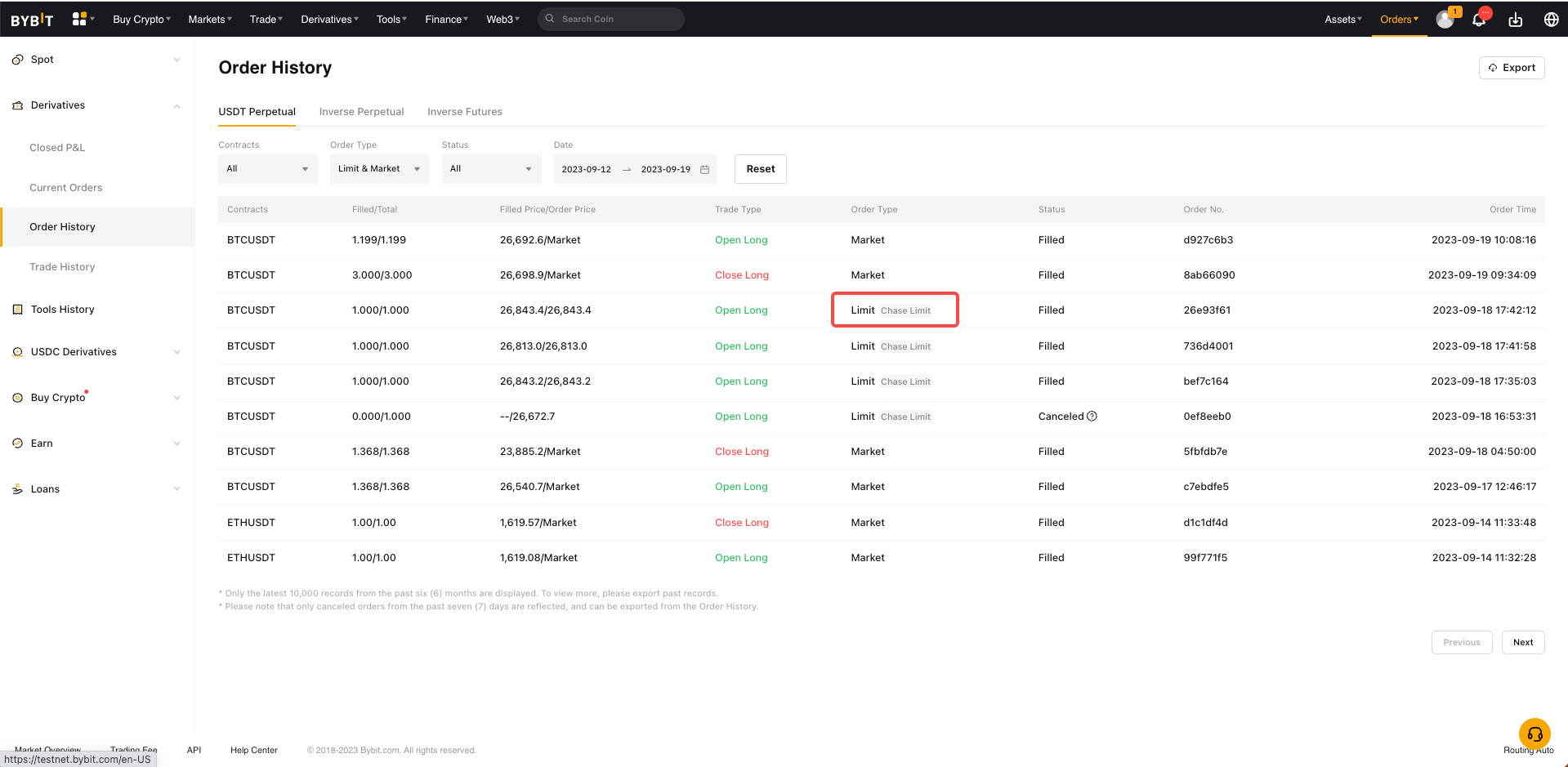Atualmente, as ordens limitadas por preço estão disponíveis na Bybit para contratos inversos, perpétuos de USDT, perpétuos de USDC e futuros de USDC.