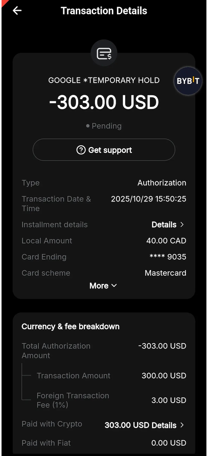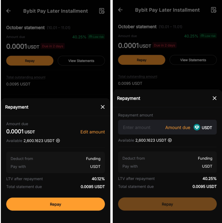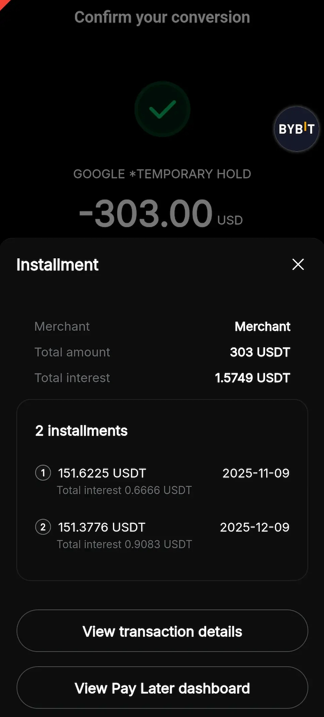 — For more details on how the collateral works, refer to FAQ — Pay Later on Bybit Card.