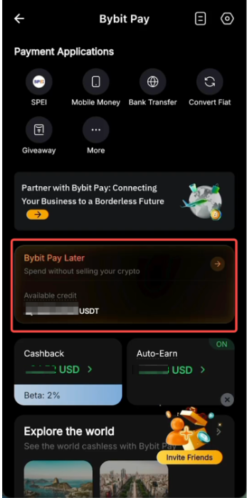Step 1: Go to Bybit Pay and tap the Bybit Pay Later section in the middle to open the Pay Later homepage.