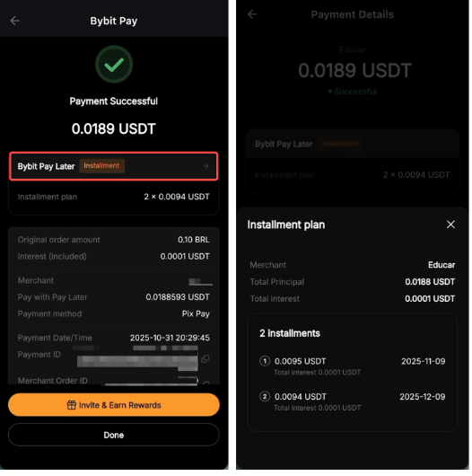 Step 4: Your installment plan details will be displayed. Tap the right arrow icon next to Bybit Pay Later for more information.