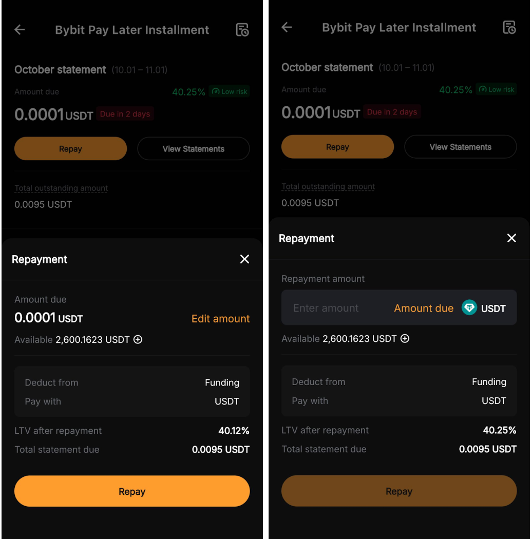 — Bybit Pay Later is currently available only on the Bybit App.