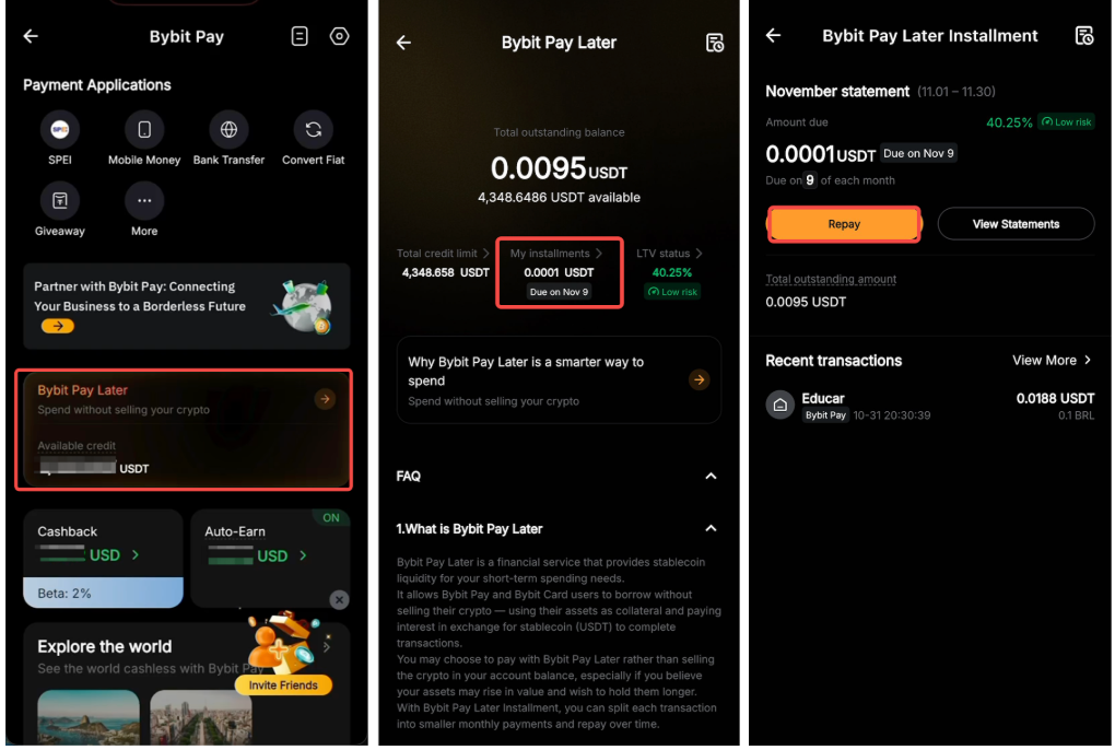 — For more details on how the collateral works, refer to FAQ — Pay Later on Bybit Pay.