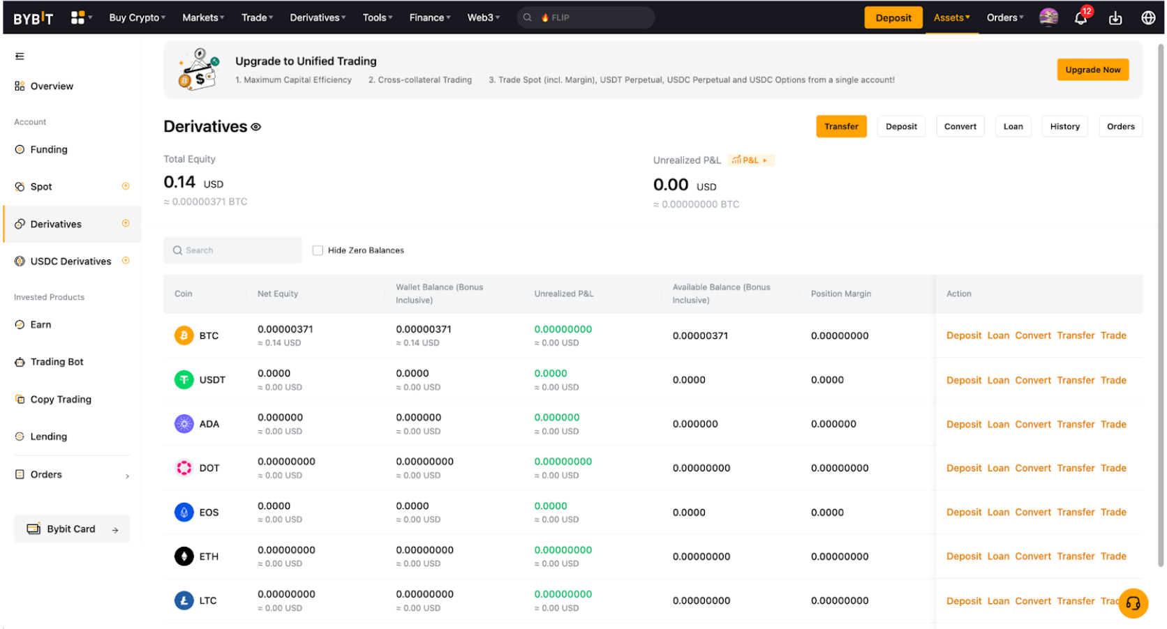 Деривативный аккаунт используется для торговли деривативами на стандартном аккаунте. Этот специальный аккаунт упрощает процесс торговли и предоставляет трейдерам все необходимые инструменты. Инверсный деривативный аккаунт имеет те же функции, что и деривативный аккаунт. Тем не менее, он предназначен только для трейдеров с Единым торговым аккаунтом и специально для торговли инверсными контрактами.