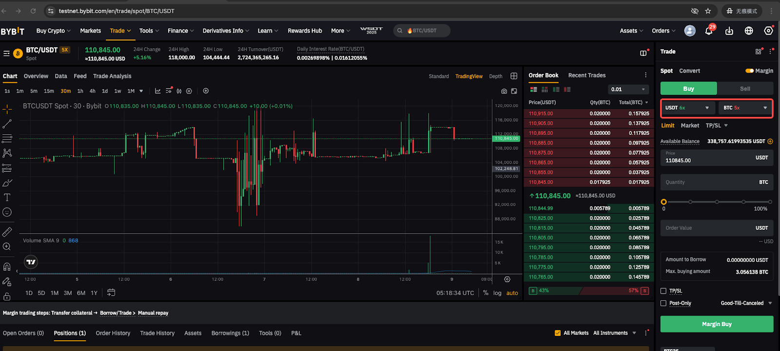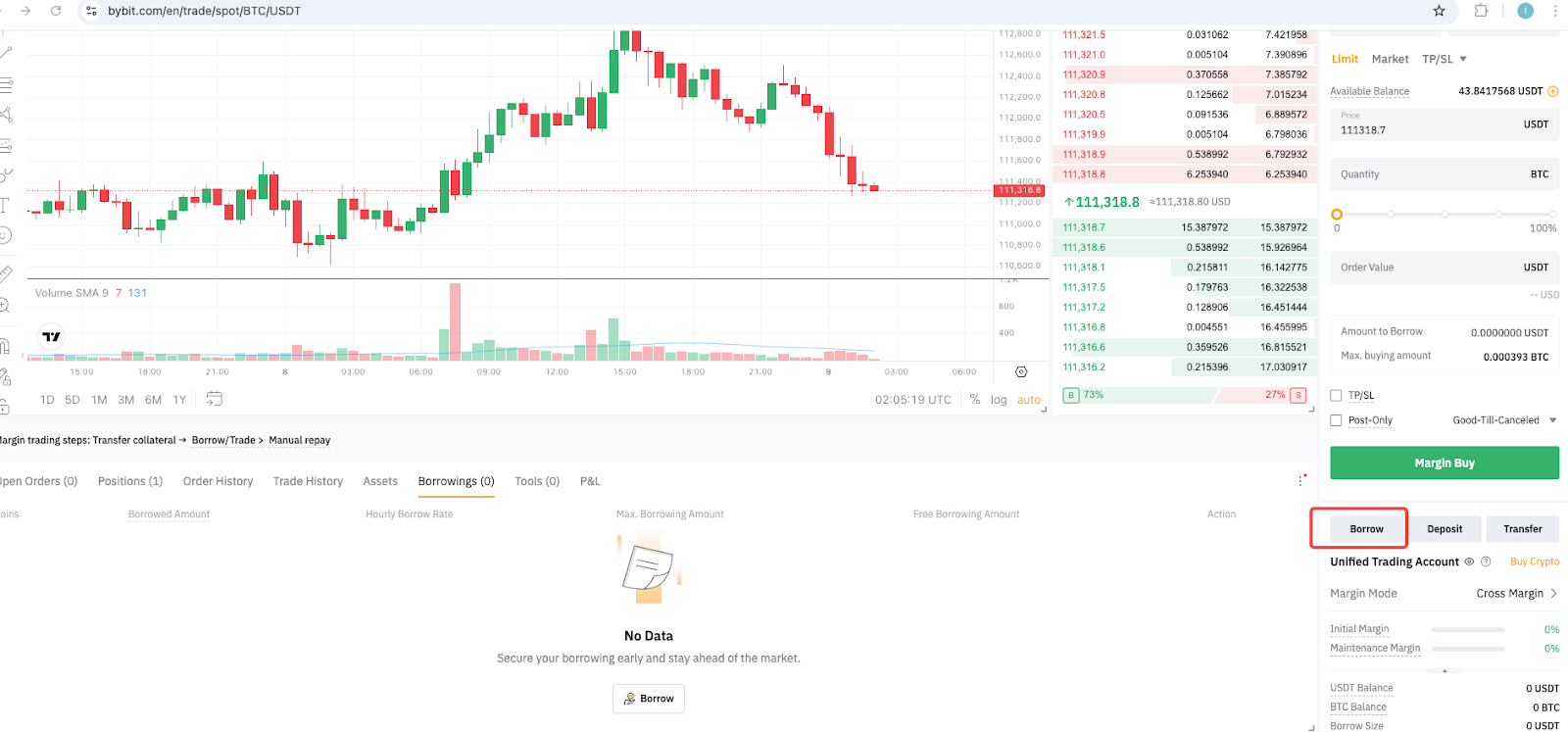 例如,如果您借用了 BTC,但目前没有任何 BTC,通过 BTC/USDT Spot 对使用 USDT 购买 BTC 将自动算作还款。您收到的 BTC 被视为已转移到您的统一交易账户。