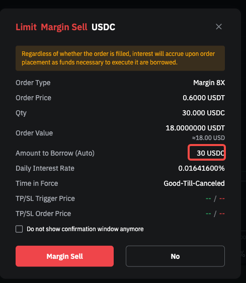 即期保证金交易 — 限价单自动借贷