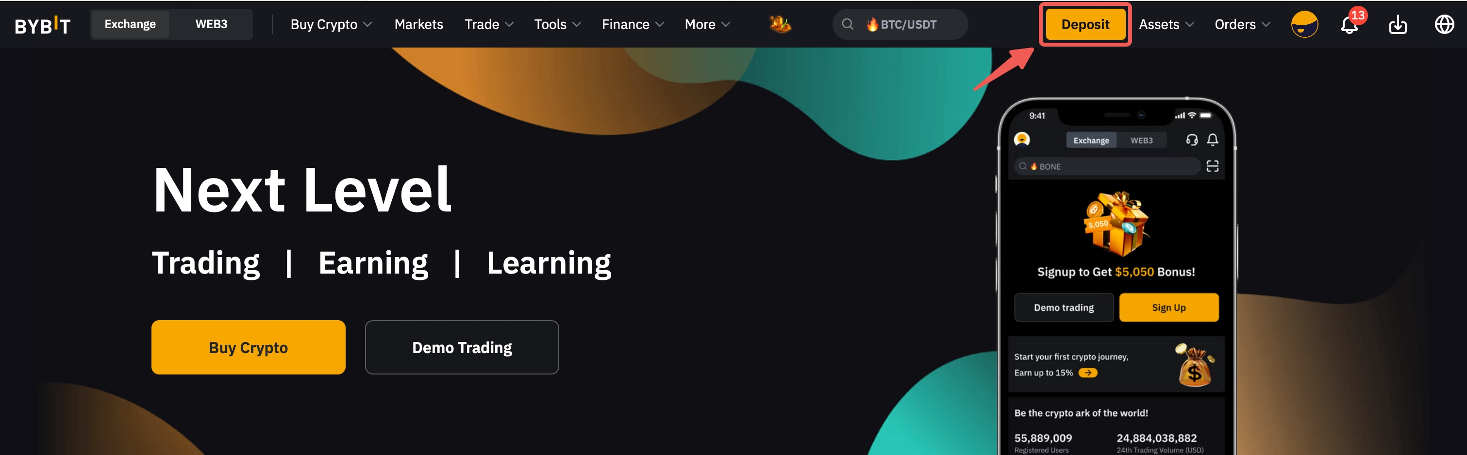 或者,您也可以在 Bybit 頁面右上角找到儲值入口。