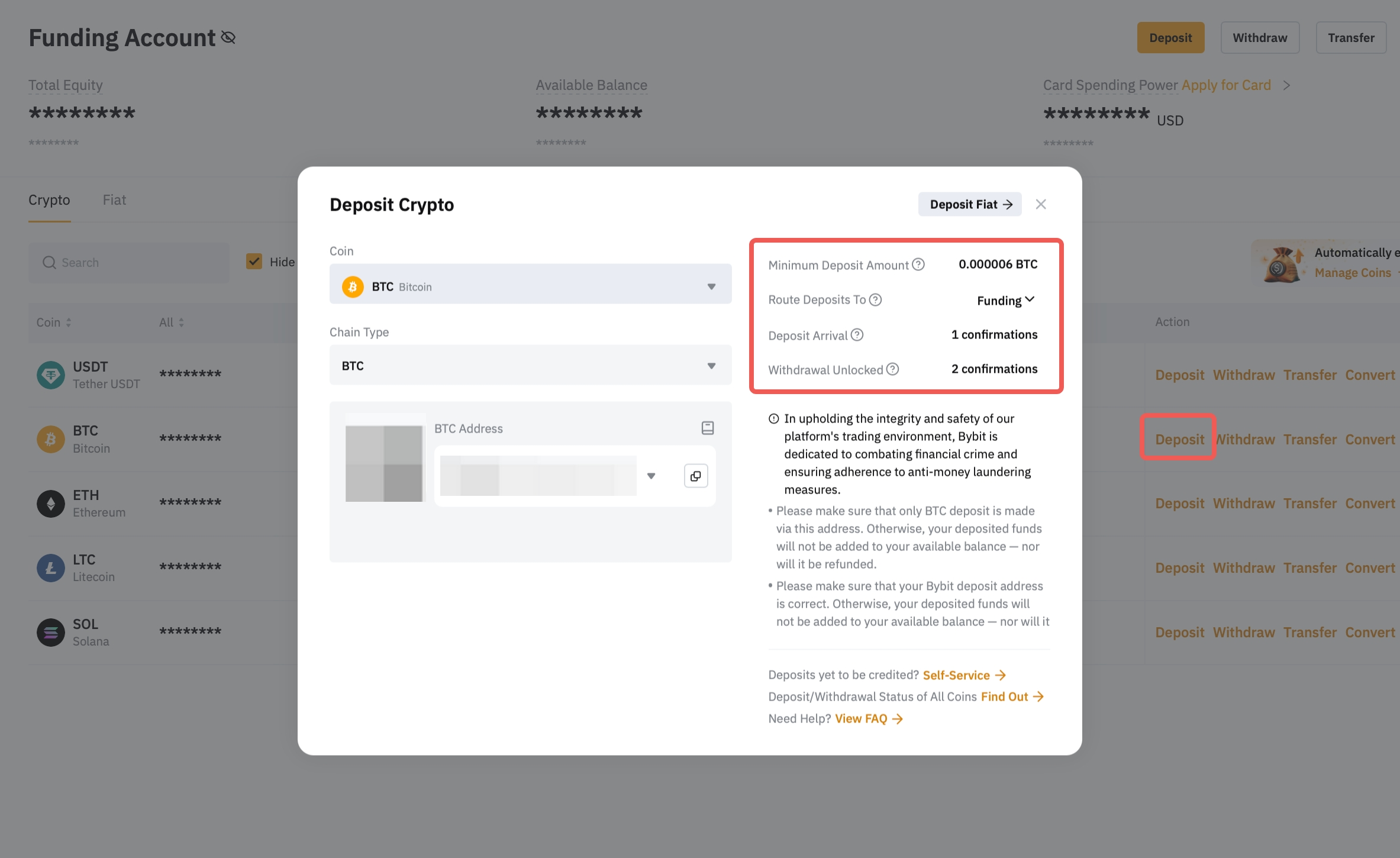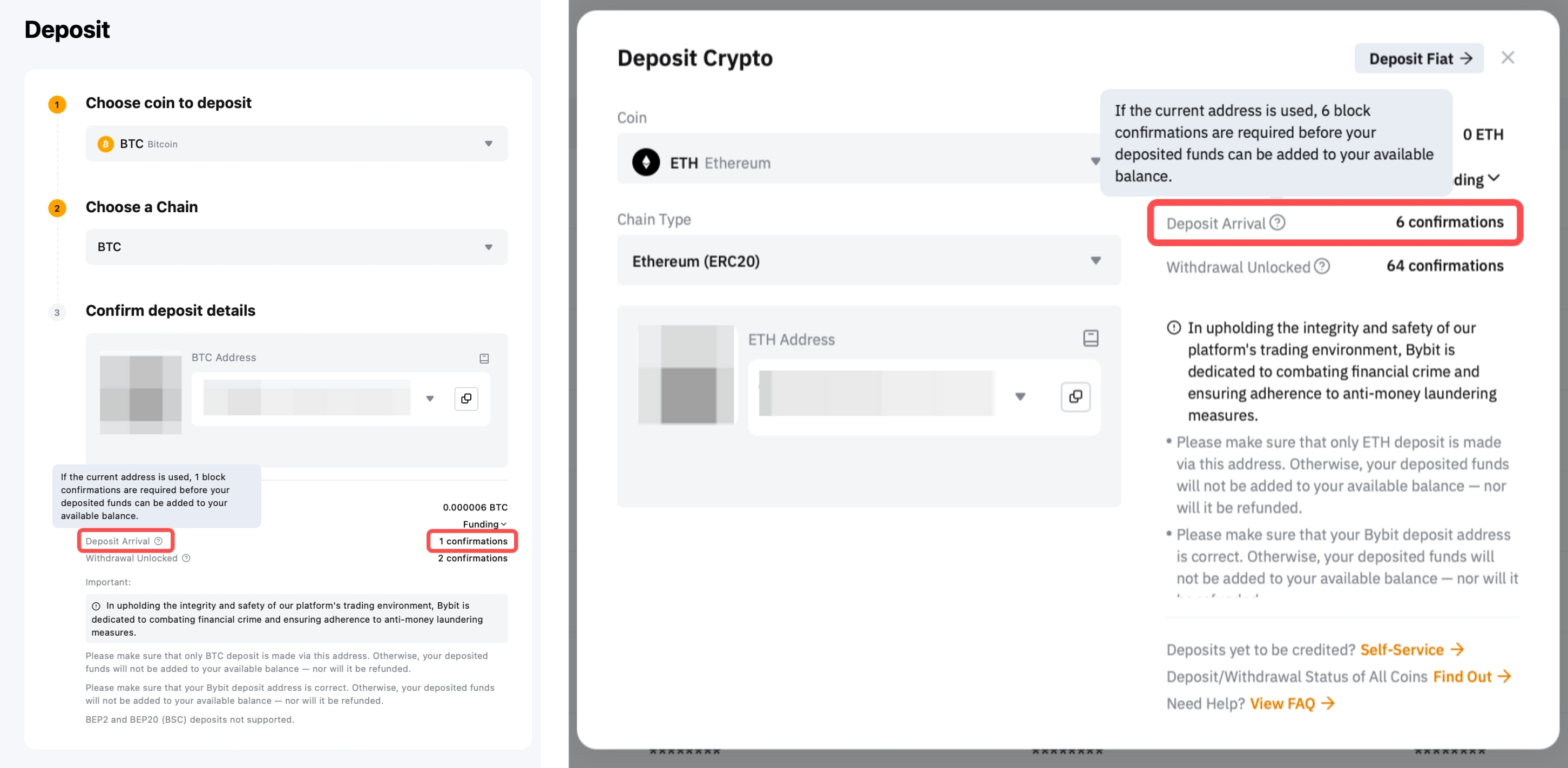 Bybit 對不同代幣在到賬之前所需的區塊鏈確認次數有不同的要求。