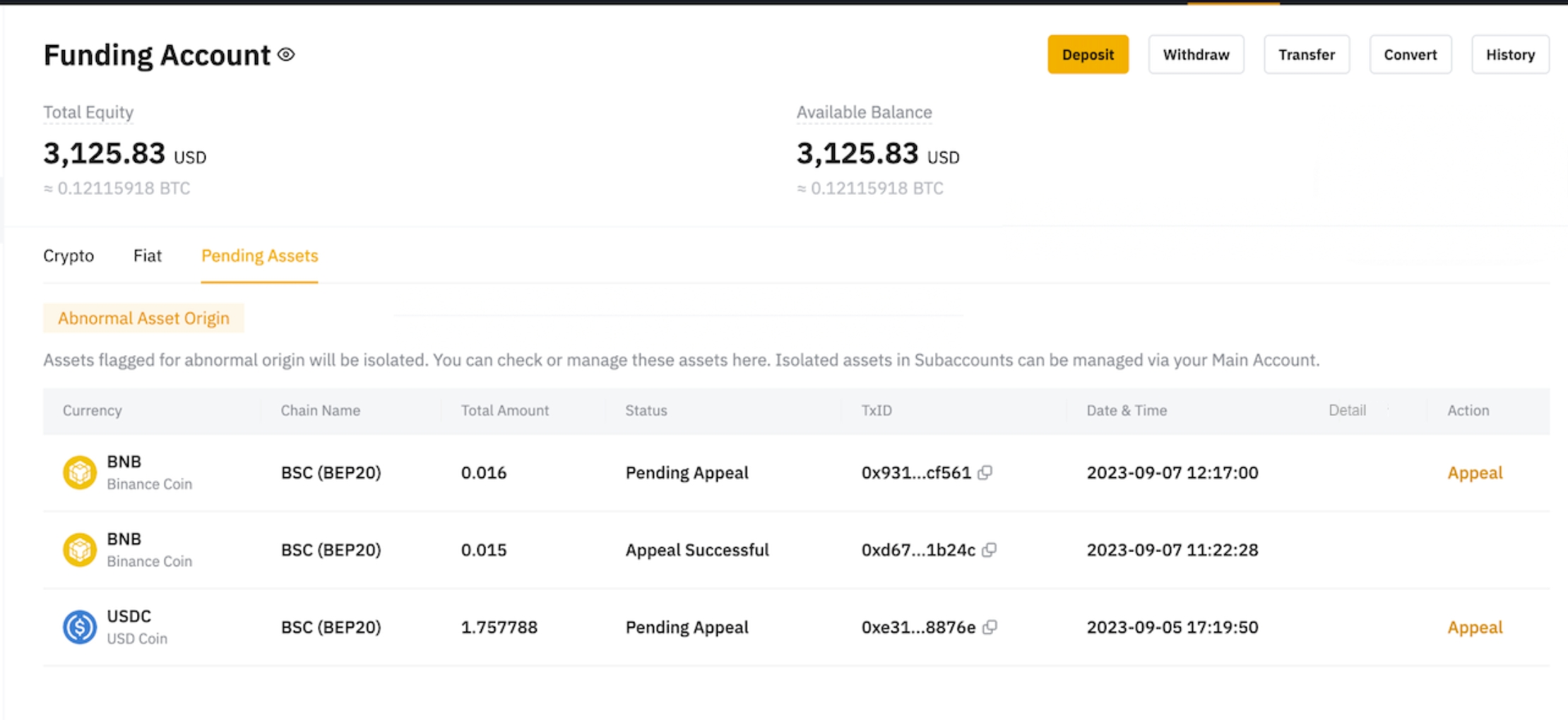 申訴成功後,您可以繼續在資產頁面上進行提幣。 |